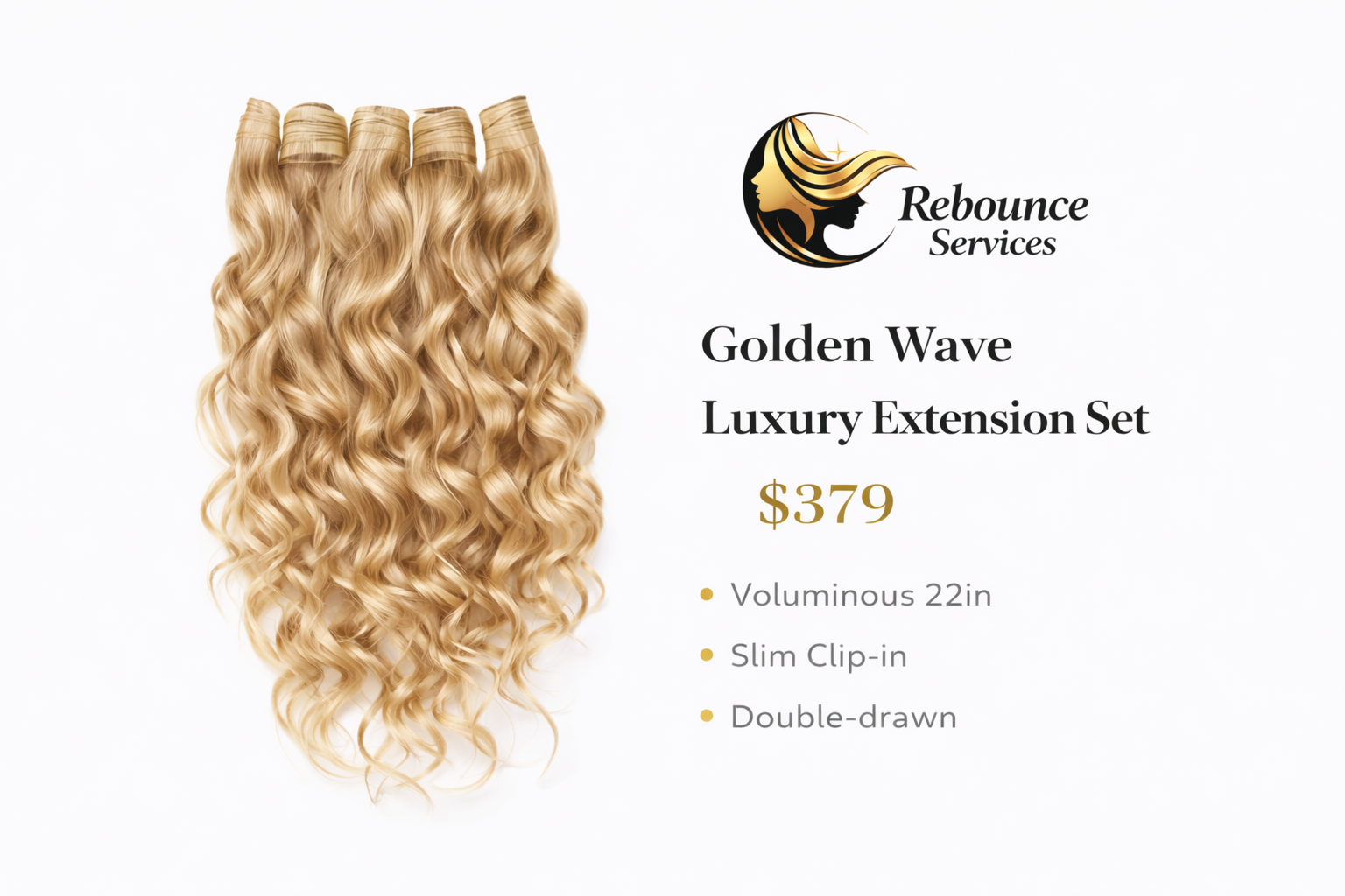 Transform your style instantly with our Golden Wave Luxury Extensions. Designed for volume and bounce, these premium extensions blend naturally with your hair for a flawless finish.